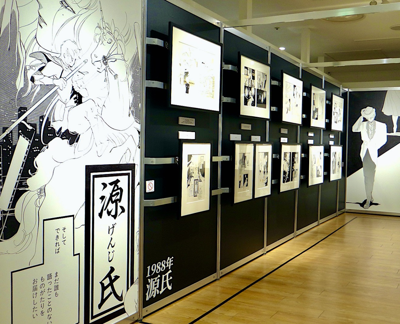私と高河ゆんの出会いは──かなり変則的ながら、私という人生にはあまりに当然でもある……雑誌『Cobalt』紙上に連載されていた、『源氏』の小説版だった。と、内覧会、若木未生先生に囁いたら、「それはまた……」と驚いた顔をされた。そう、入り口はいろいろなところにある。私にとっては高河ゆんは、『源氏』というあの美しい線であり、『シャルルに捧げる夜想曲』の挿絵だった。シャルルの文字は、本会の圧巻の年表にも! 布団にかぶって小説ばかり読んでいた、それしか許されなかった文学少女でも開けられる扉がそこにはあった。