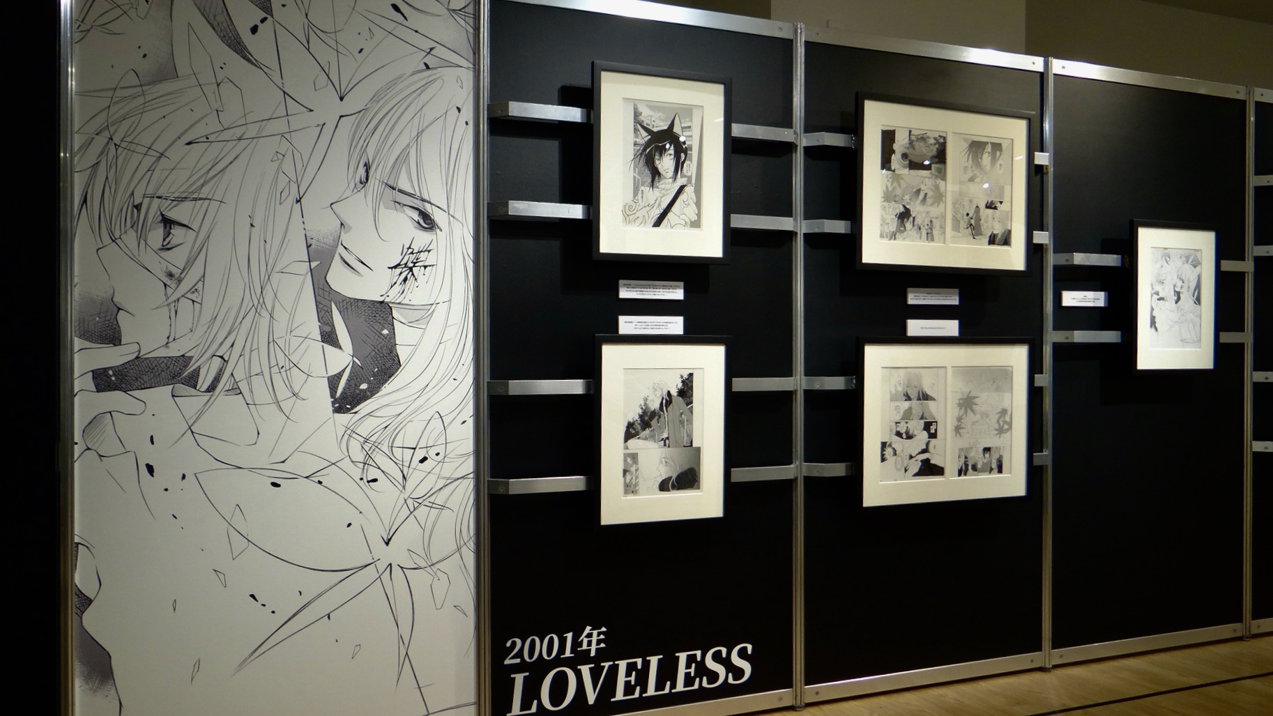 届けられた美しい祝祭の花々が並ぶなか、その空間へ一歩、足を踏み入れる。待っていたのは、あたたかく真摯に私たちを迎える自身の言の葉と今回のために、描き下ろされた『アーシアン』の、ちはや、影艶。『LOVELESS』の青柳立夏、我妻草灯(もう、この名前からして愛おしい……)のパネル。