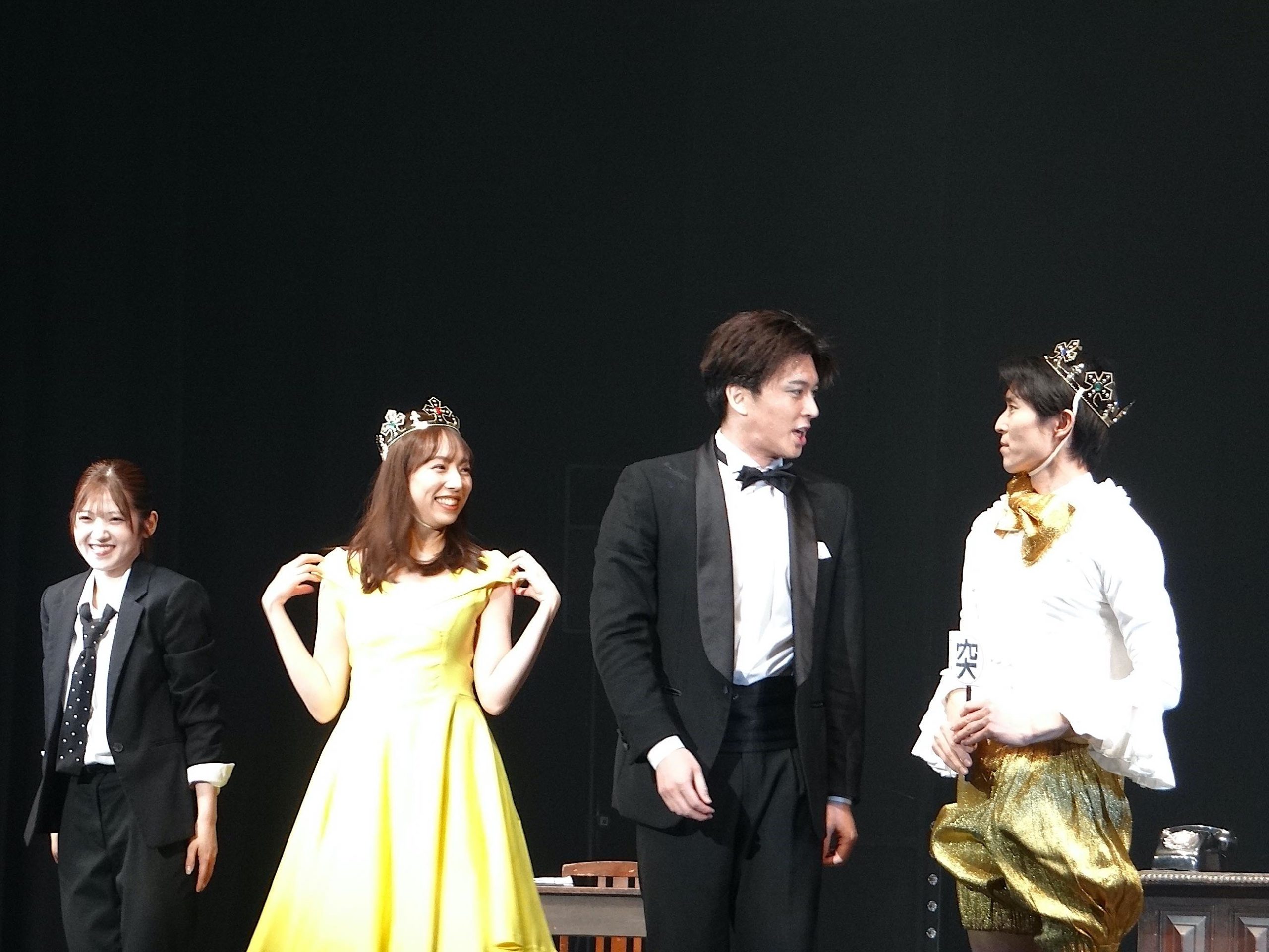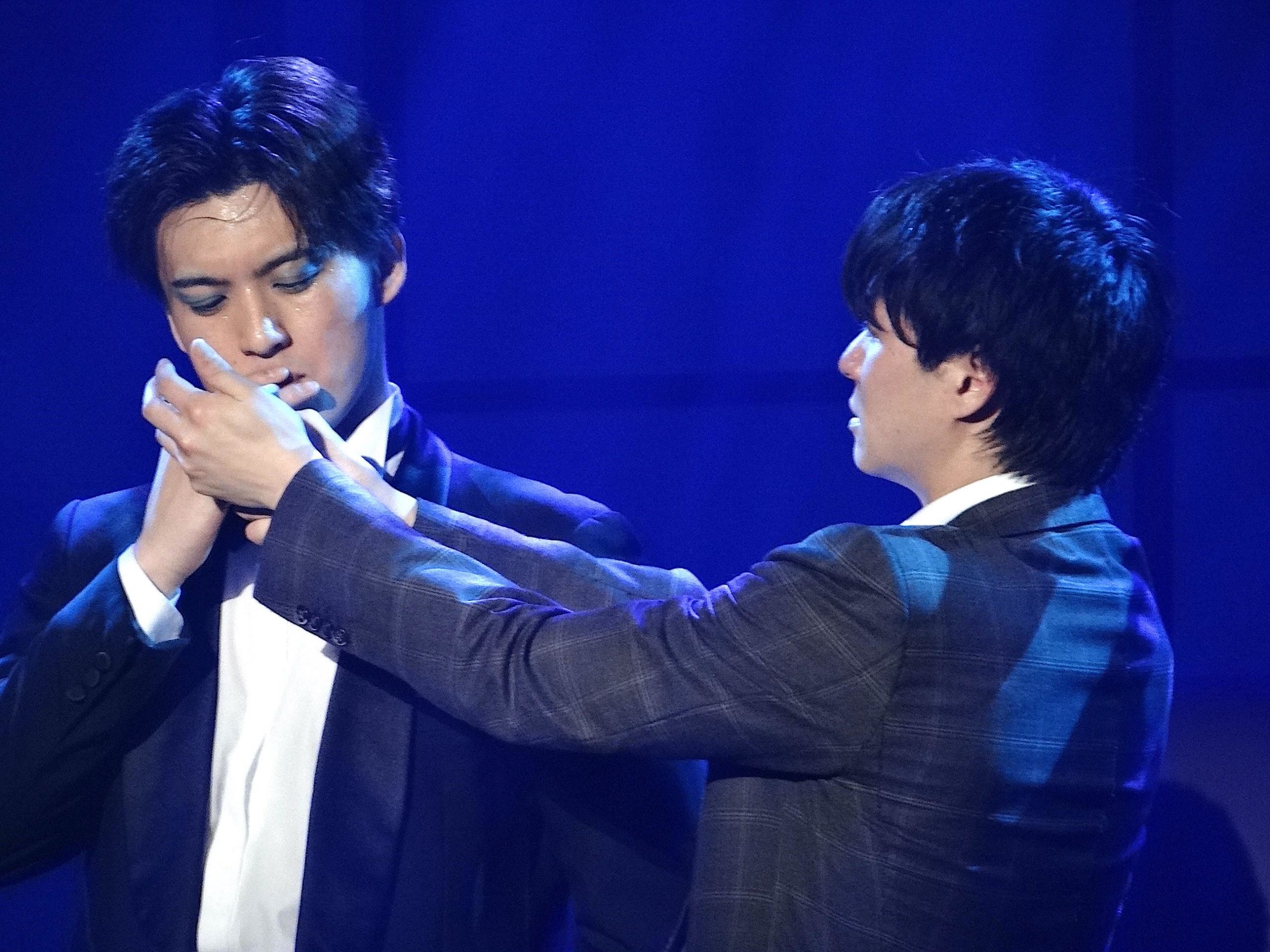 ホテルのオートロックを開ける愉快な場面では、舞台袖にいた百名を、荒井が無理やり引きずり出し(?)無茶振り! しかし、そこは高橋を巻き込み、以前に高橋が見せたネタ(?)を披露、こちらも息ぴったりのコンビっぷりで見事に応え、笑いが起こる。